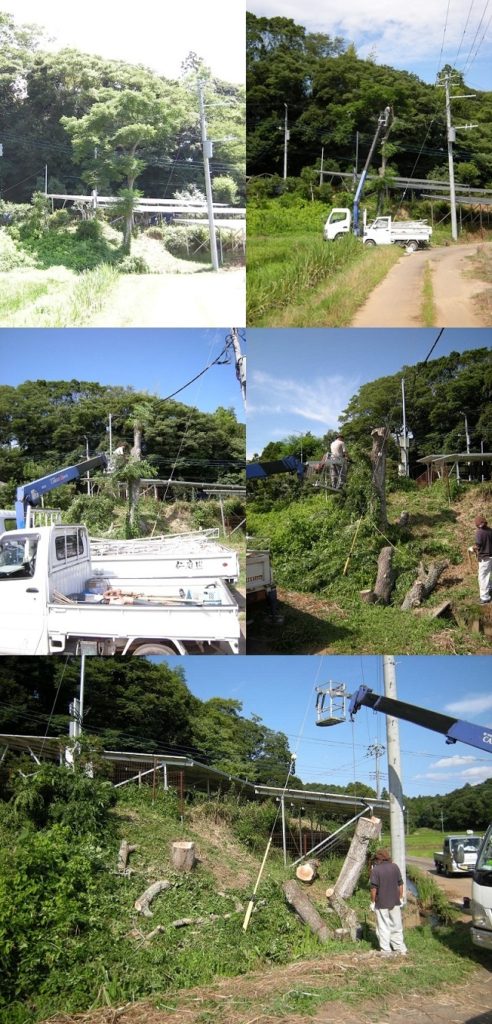 太陽光発電用パネルへの日差しを遮ってしまっている木の伐採を承りました。